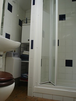 Bathroom with shower, sink and toilet