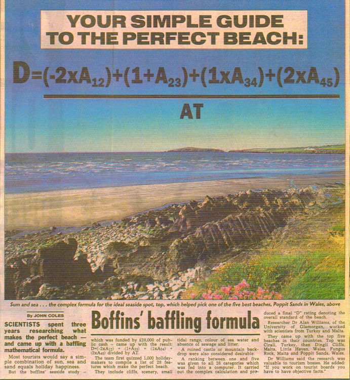 Poppit Sands Beach is patrolled by a lifesaver during the summer months and has a very good cleanliness record and holds Blue Flag Status.In fact a report by Universities in Malta, Turkey and Wales concluded that the beach at Poppit was one of the best five beaches in the three countries, as shown in the newspaper report below... |